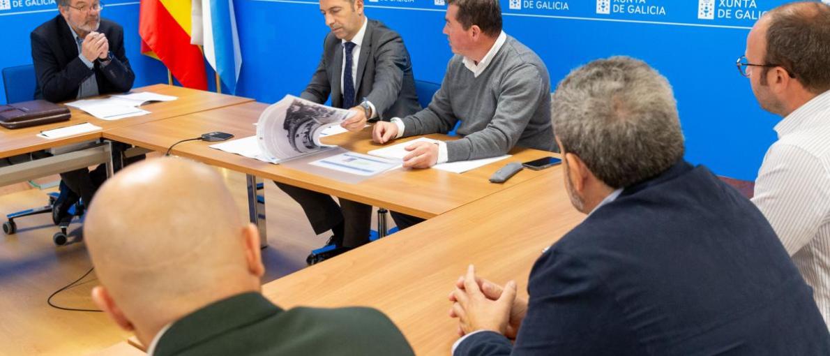 O conselleiro do Mar, Alfonso Villares, acompañado polo presidente de Portos de Galicia, José Antonio Álvarez, mantivo un encontro de traballo co alcalde de Ponteceso, José Manuel Mato